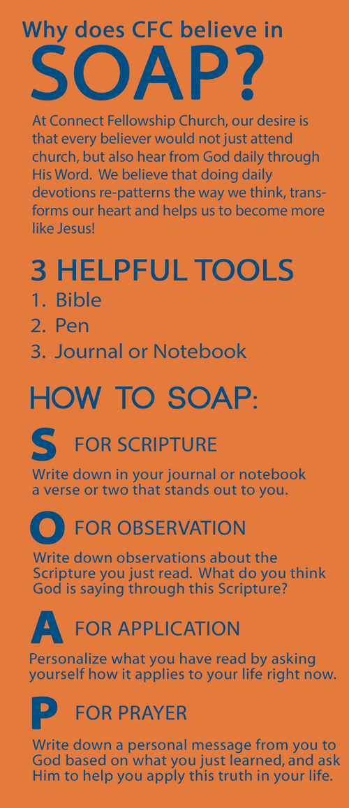 At Connect Fellowship, our desire is that every believer would not just attend church, but also hear from God daily through His Word! As we read the Bible, we begin to see how God responds to things. Doing daily devotions re-patterns the way we think, transforms the spirit of our mind, and helps us become more like Jesus!